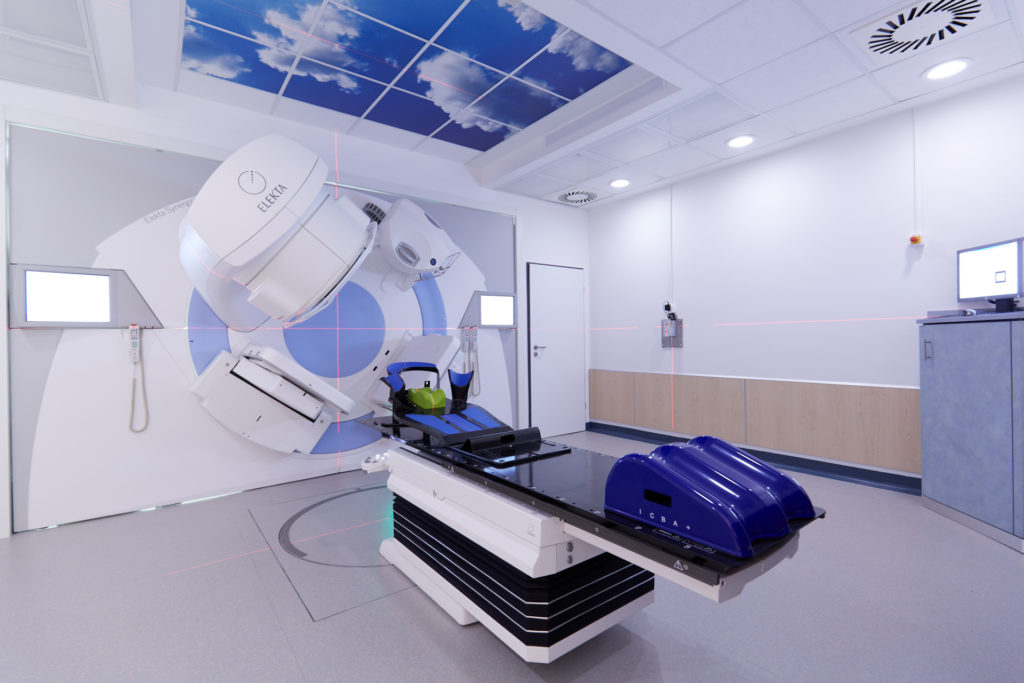 - 3D-konformale Strahlentherapie unter Verwendung eines eigenen Computertomographen mit der Möglichkeit der virtuellen Simulation und Fusion von MRT- und PET-CT-Daten zur Bestrahlungsplanung